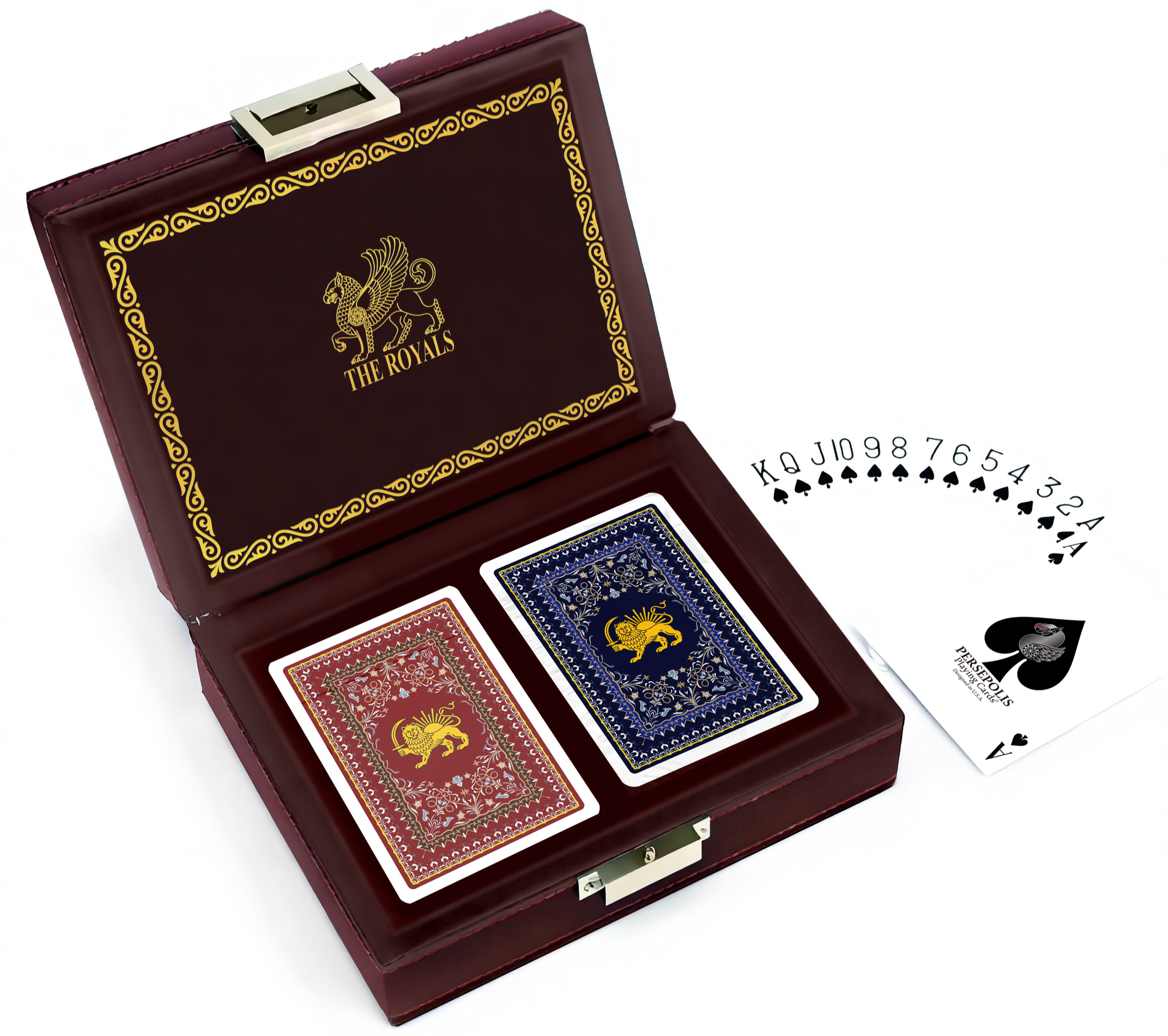 ©2025 The Royals™ deck represents the next line of Persepolis Playing Cards®. It captures the long lineage of Iranian Royal families, showcasing the first two, and the final two, that ruled over greater Iran.
